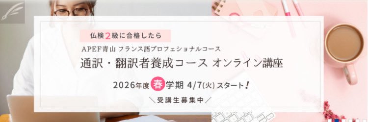 @futsuken_cours実用フランス語技能検定試験(#仏検)のAPEFと青山学院大学文学部フランス文学科の協定による教育事業「APEF青山フランス語プロフェショナルコース」公式。通訳・翻訳者養成オンライン講座。仏検2級以上対象。 🌸2026年度春学期 お申込み受付中。 🌸オンライン入学テスト3/28(土)。 詳しくはお問合せください😊