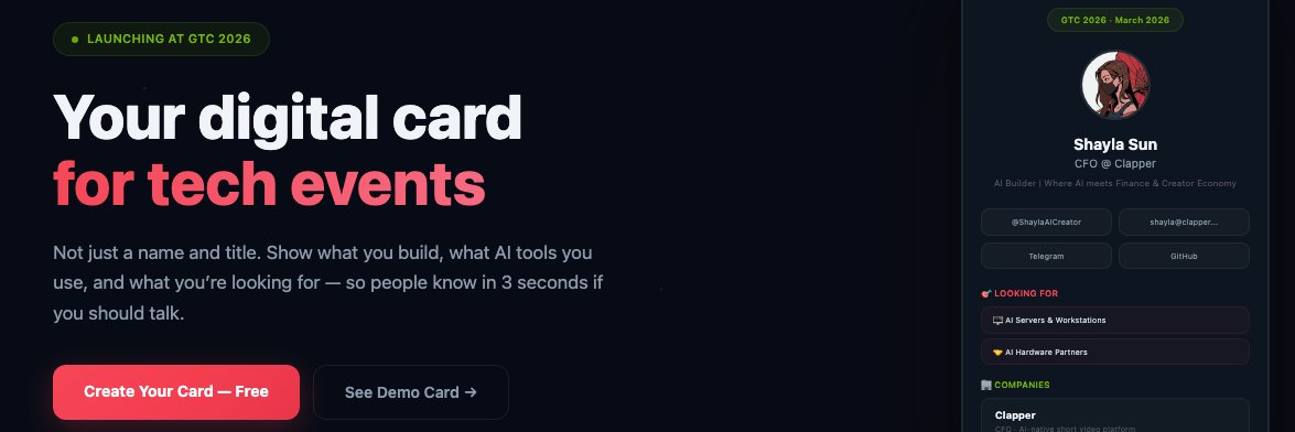 AI-native digital business cards. Built by a CFO with @AnthropicAI Claude in days. Launching at #GTC2026