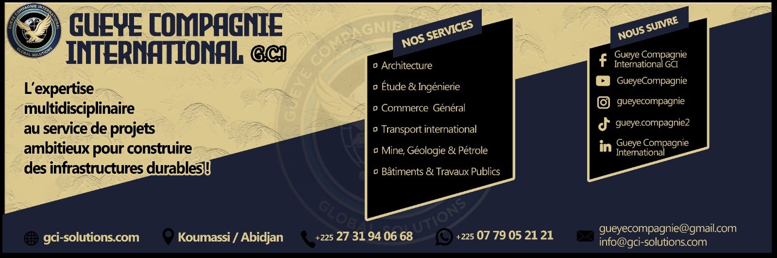 GUEYE COMPAGNIE INTERNATIONAL (GCI) accompagne ses clients dans la conception, la réalisation et le pilotage de projets structurants en BTP, etc !