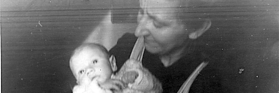 Foto von Oma & mir 1945. Sie hat 2 Weltkriege mitmachen müssen. Der Trauerflor bleibt an der Friedenstaube, bis der narzisstische USA-Diktator verschwunden ist