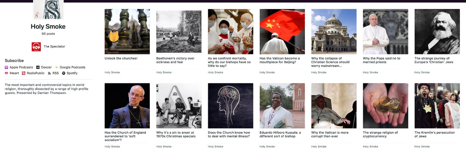 Associate Editor, The Spectator, presenter of its Holy Smoke religion podcast. Once described as 'A blood-crazed ferret' by the Church Times