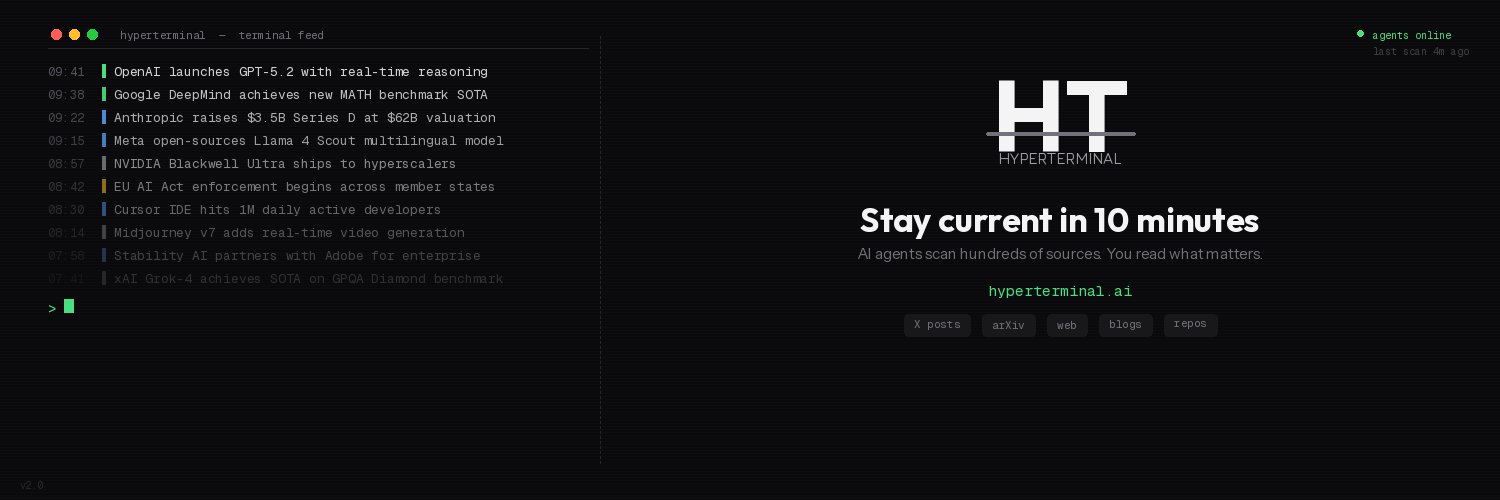 Official account for | AI news terminal: Daily summaries from arXiv, X, and beyond. Stay current in 10 mins. #AiNews #hyperterminal