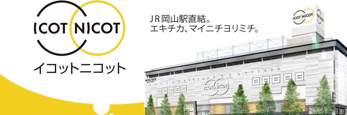 岡山駅近の商業施設イコットニコットの公式ツイッターです。 ”明るく元気に出かけたくなる場所”イコットニコット「行こっと」「ニコ(笑顔)っと」のイベント情報、お得情報をツイートします。