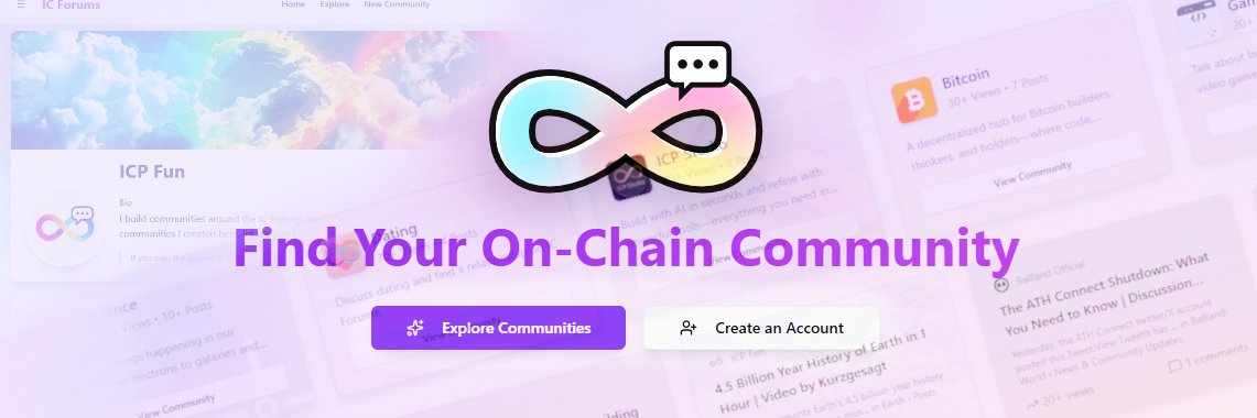 Fully on-chain community building app on #ICP. Find your NEW on-chain community and home on the Internet Computer | https://icforums.xyz/