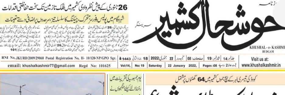 Official Twitter handle of Daily Urdu Newspaper Khushal_e_Kashmir Published from Srinagar J&K Owner/Chief Editor/Printer/Publisher Sumaira Shafi Nazki