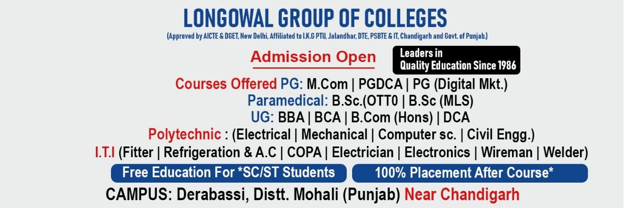 Longowal Group of Colleges, Derabassi aims at providing superior quality trained manpower having social commitment along with career advancement to meet the cha