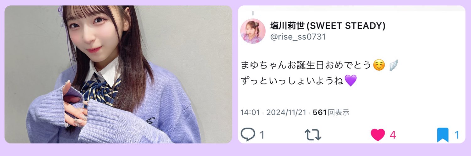 すいすての 山梨の 誇り 🗻🌟꙳³ 塩川 莉世ちゃんが だいすき 😍🙈🫶🏻💜 会いたい 。チーム山梨も だいすきです 🥰🫶🏻💜🩵💙 𝐧𝐞𝐱𝐭…3/21 22 4/4 5 🧸 and more…❣️無言フォローは No フォロバ 🙅♀️ FFは仲良くしてくれる人限定 ·͜·ᰔᩚ