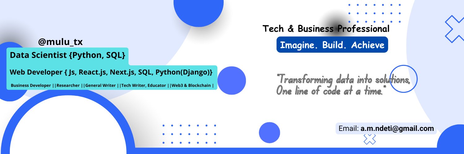 Data Scientist ||Software Developer| Js, React.js, SQL, Python| Django ||Business Developer |Researcher || Writer ||Tech Educator |Blockchain | RemoteJobs| Web3
