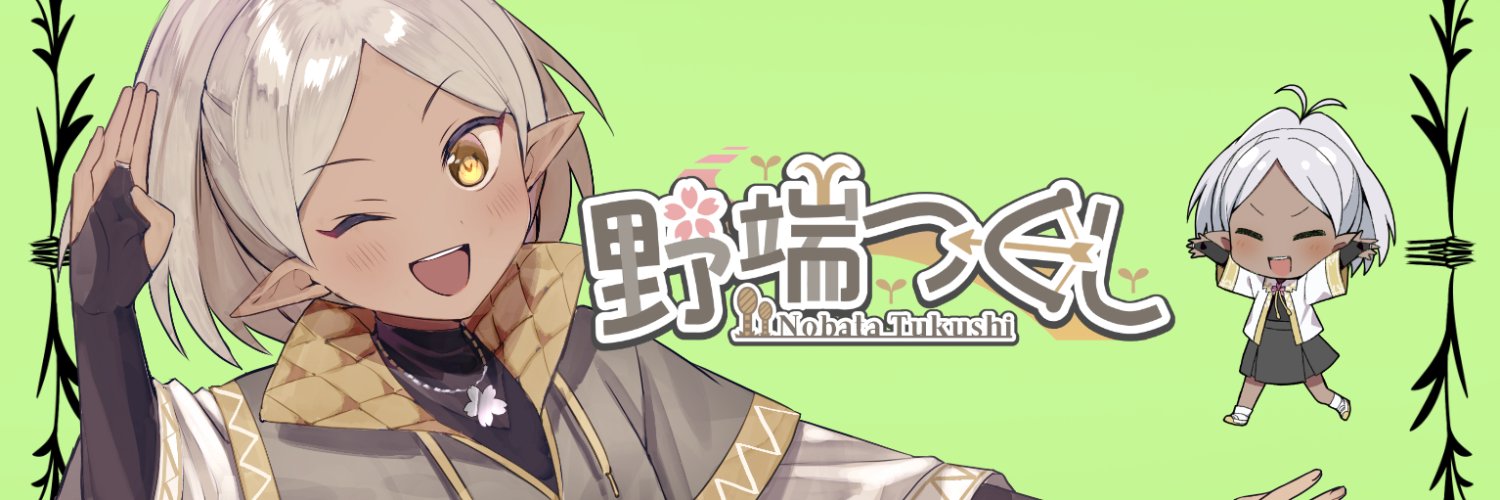 YND所属のVliver野端(のばた)つくしです!#新人Vtuber いつもは土手の橋の下を改造して生きてます!どーぞよろしく! 永遠の相棒→しぐにゃん(@akane_shigure) 配信タグ #ツックナックス ファンアートは #ツクトグラム パマは雪パマ!!(@card_ha_hirotta)