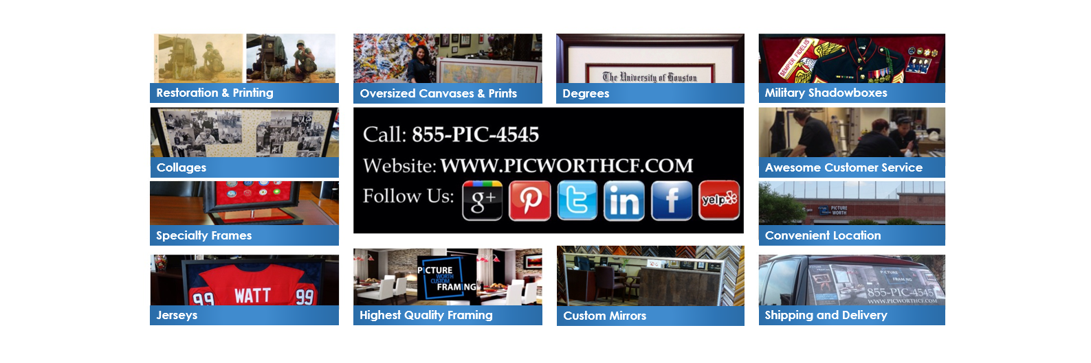 Picture Worth Custom Framing is Houston Metro’s #1 rated custom framer and wall decor supplier located in Spring, Texas.