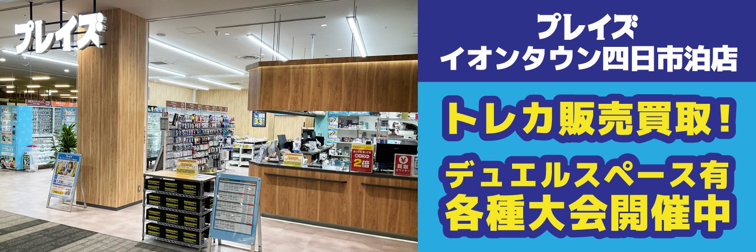 カードショップ『プレイズ』 三重県イオンタウン四日市泊2階にて営業中✨対戦スペース64席✨ポケカ、遊戯王、ワンピカ、デュエマ、ホロカ、ロルカナ、DBSDS、RUSH、VG、ガンダム、フレンダ! 【営業時間】 10時~21時(買取受付20時まで)