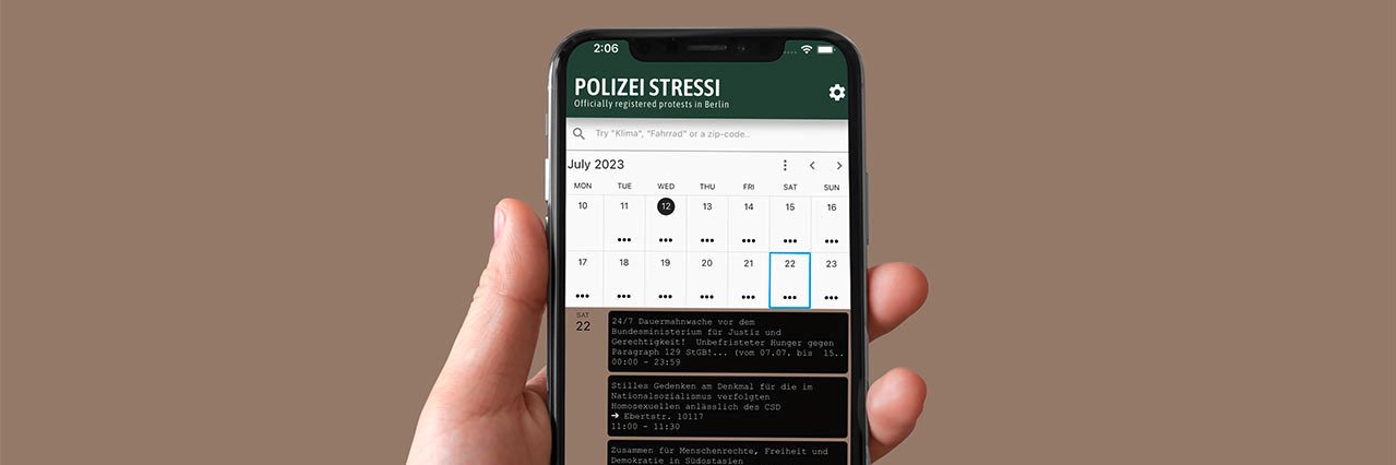 Every registred protest happening in Berlin - well sorted in one simple App. Daily updated. Large searchable database w/ heatmaps & histrograms.