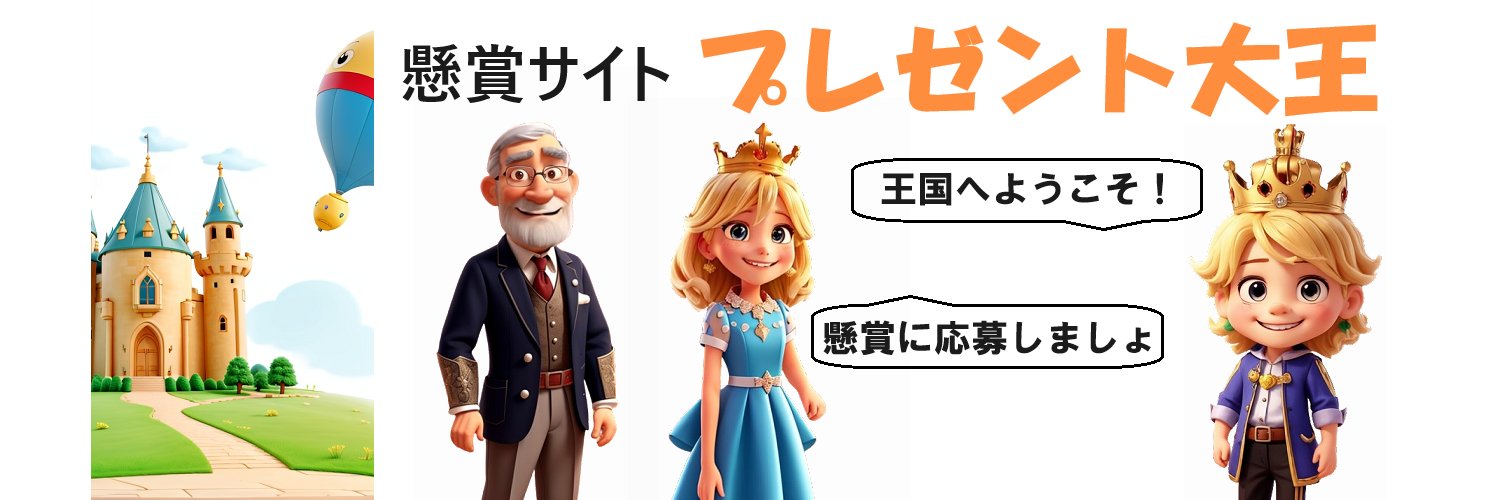 懸賞サイト・プレゼント大王。運営28年の老舗。車・海外旅行・高額現金など、お得な懸賞情報をUP。 ⭐️ちょっとお茶目で可愛い、プレゼント大王が、毎日、懸賞情報をお知らせしてるよ~。⭐️「Amazonギフト券 2,000円」当たるフォロー&リポストキャンペーン実施!⭐️ ベルマーク設定もお願いしま~す。(^_^)/