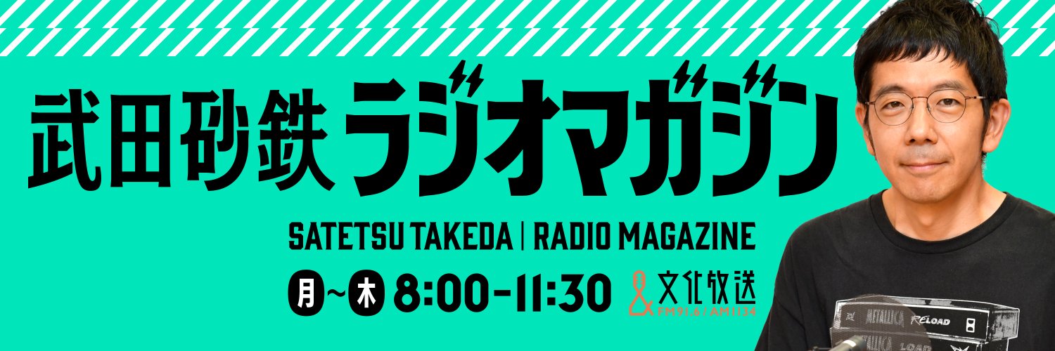 大事なことから大事じゃなさそうなことまで。 あなたの耳の渇きを潤す生放送ラジオ番組『武田砂鉄 ラジオマガジン』 毎週月曜~木曜 朝8時~11時30分 生放送中📻📚 📧 rm@joqr.net ハッシュタグは #ラジオマガジン