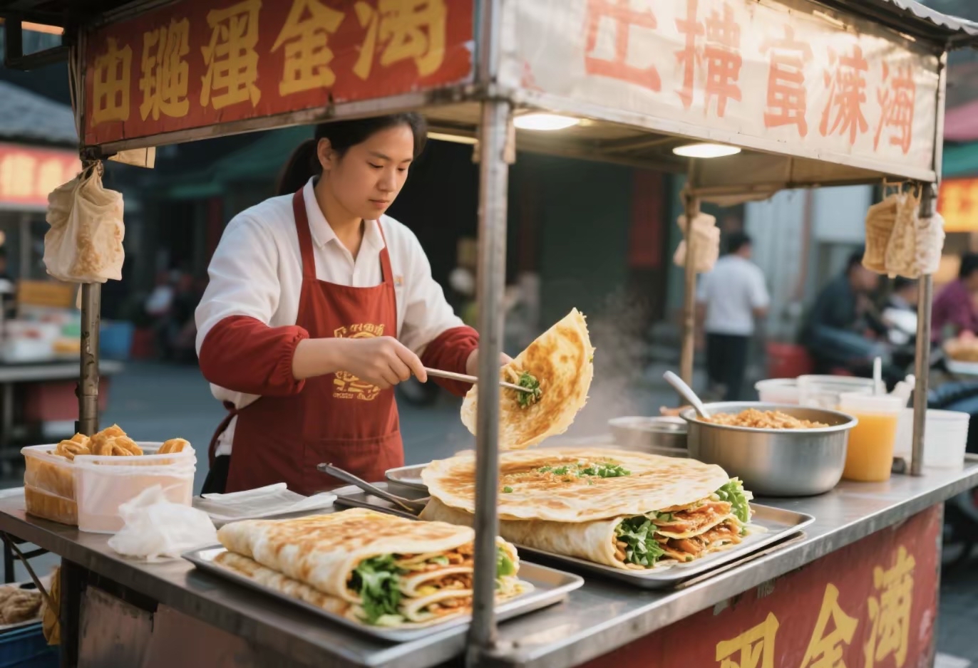 "Street food alert! Crispy fried dumplings + steaming hot sauce = perfect quick bite. Grab one at your local night market—crunchy outside, juicy inside, 10/10! #StreetFoodLove#QuickBites"