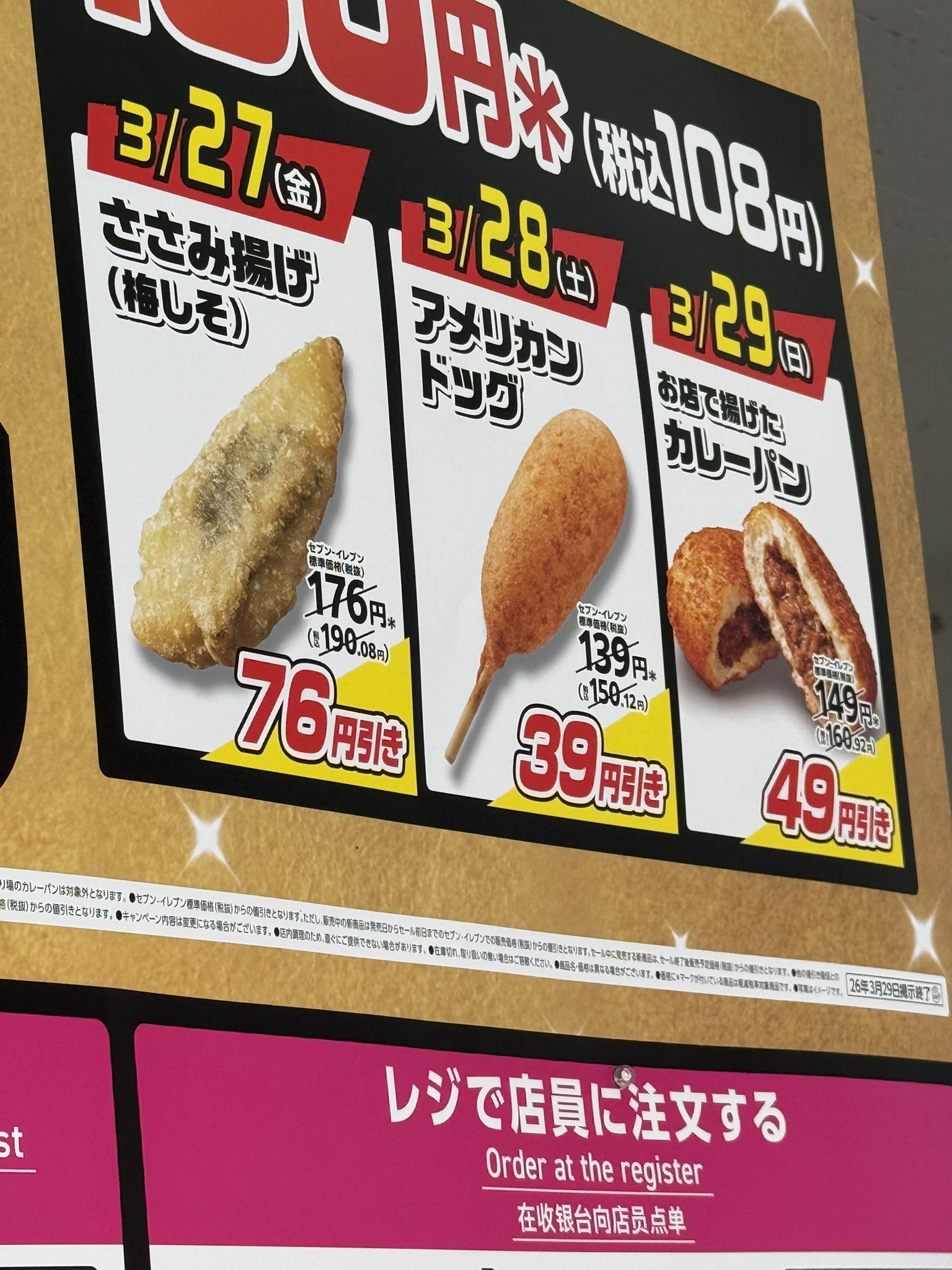 まるごとバナナ刑事 @cast233 · 7h セブンイレブンの揚げ物 日替わりスーパーセール 今日はアメリカンドッグ 昨日は諸事情でささみ揚げ買えなかったので アメリカンドッグ4本! お花見にどーぞ? #花見 #お花見 #アメリカンドッグ #セブンイレブン @event_checker まるごとバナナ刑事 @cast233 · 6d 夜勤明けに セブンイレブンの揚げ物 日替わりスーパーセールで 揚げ鶏買って帰りました。 来週もあるよ #夜勤 #夜勤明け #夜勤帰り @event_checker 8 23 60.1K