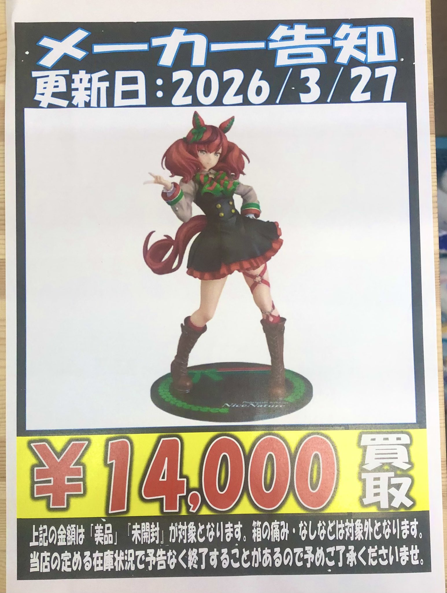 おたいち 三重本店 おもちゃ部門 @otaichimietoy · 1h 📡《美少女メーカー 買取告知》⚡️ ウマ娘 1/7 ナイスネイチャ 買取価格:¥14,000 メーカー名:ファット・カンパニー (未開封・美品 対象) お持ちの方は是非お越しください🙌 #ウマ娘プリティーダービー #ナイスネイチャ #美少女メーカーフィギュア #Phat #買Js 140