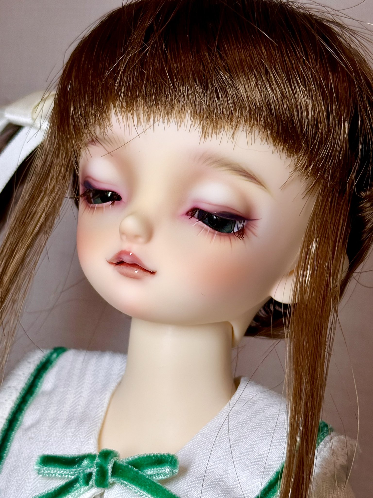 🍀う🌱え🪴き🌿 @ueki8botanical · 21h 寝てるほう、現物は薄い桜色のめちゃくちゃ可愛い色のウィッグなんだけど 写真だと上手く写らないかも #スーパードルフィー #幼SD #幼SDツバメ ドール写真注意⚠️ 2 72