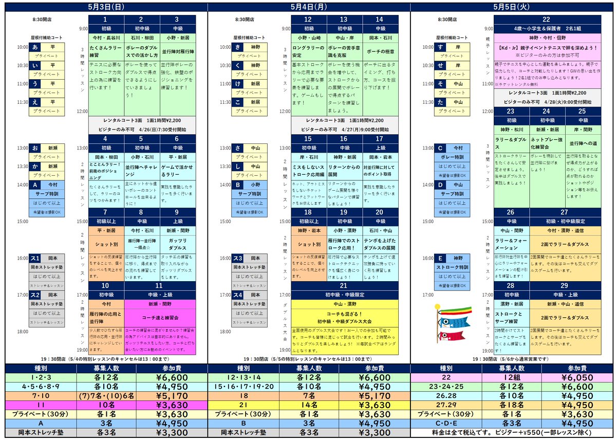 【日時】2026/3/29(日) 15:00-17:00 【場所】くにじまテニスコート | 大阪府のくにじまテニスコートで開催されるテニスオフ会・練習会です。テニスベアなら東京・神奈川・大阪をはじめとする全国のテニスコートで開催される中から、自分のレベルに合ったイベントを探して参加することができます。また自分で主催することもできます。今すぐテニスベアを使おう!