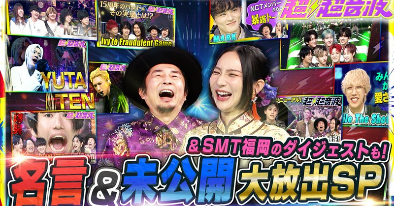 「超超音波」3月27日(金)放送分「今回はトーク総集編とSMTOWN LIVE 2025-26 in FUKUOKAを特集!」を無料で見るならTVer(ティーバー)!まずはトーク総集編! 番組リニューアルから約1年の間にスタジオへ遊びに来てくれた 番組ファミリーの方々の名言集と未公開トークを一挙お届け! さらに今年の冬に開催した、世界を熱狂させるK-POPの祭典 「SMTOWN LIVE...