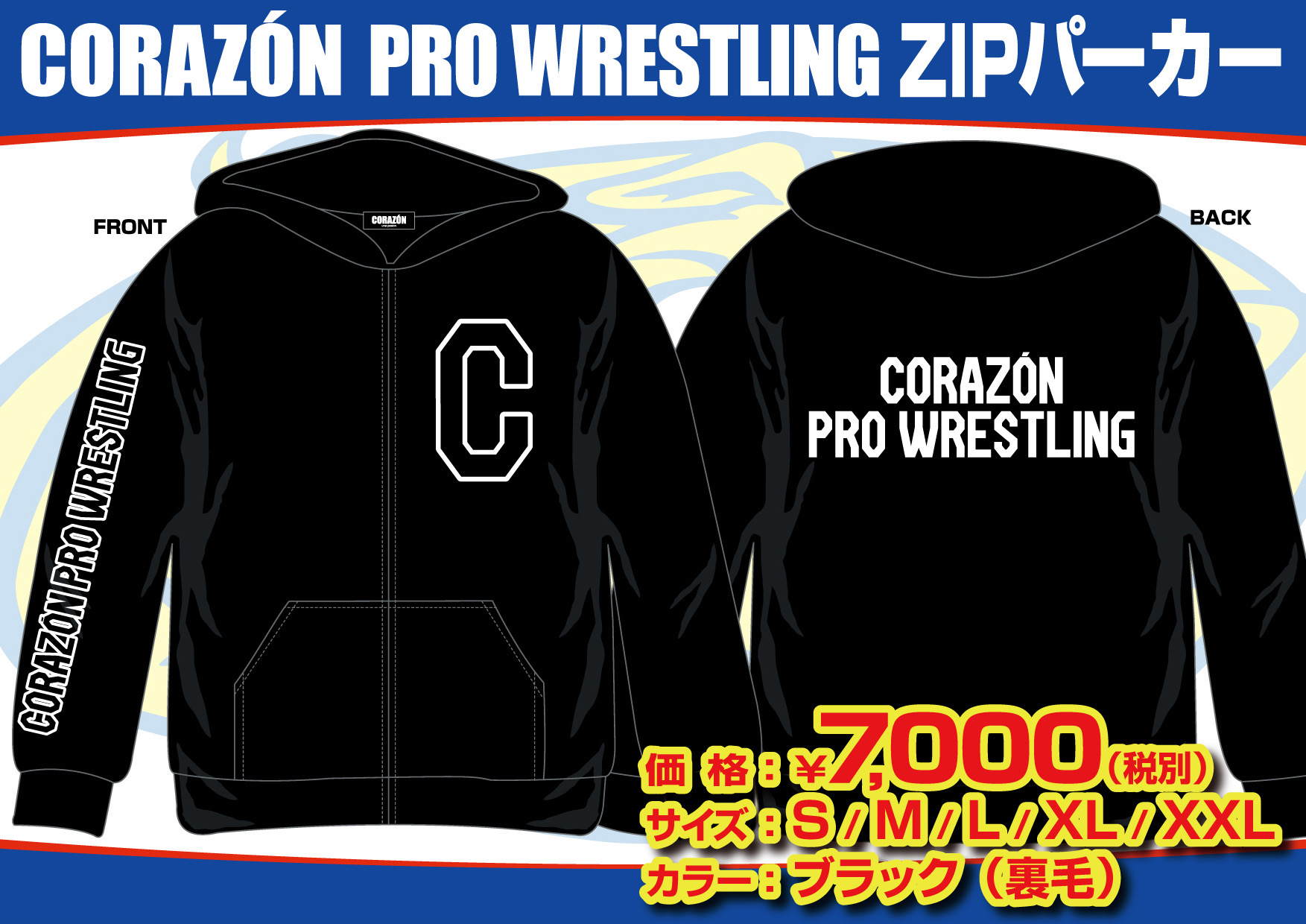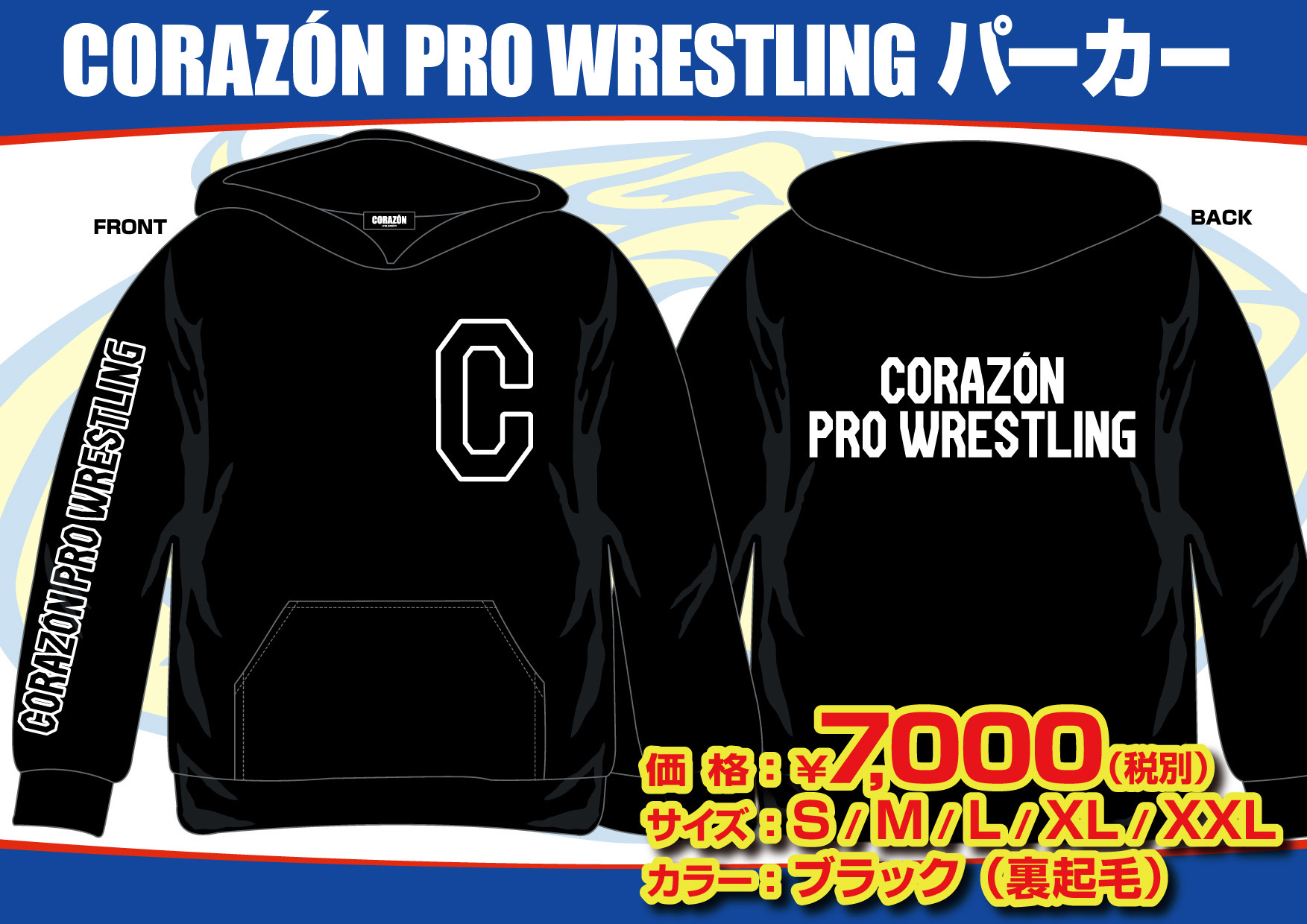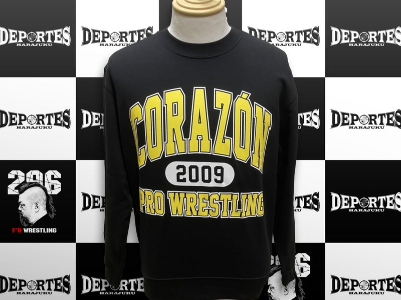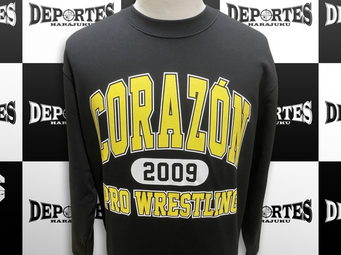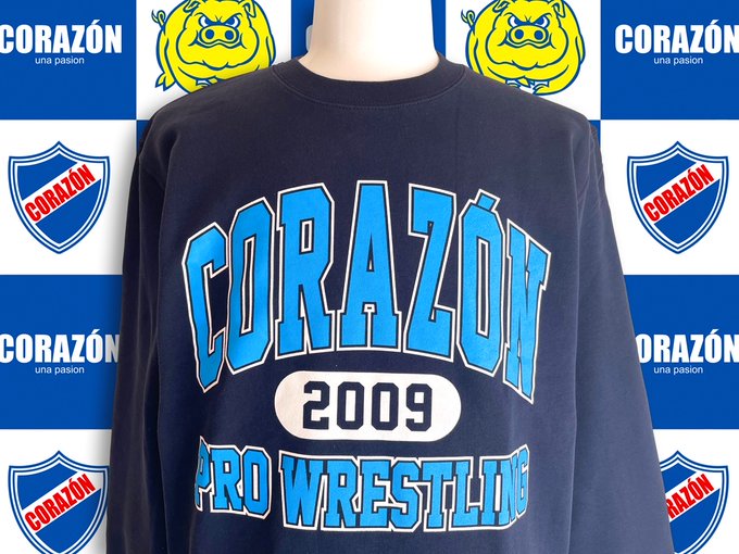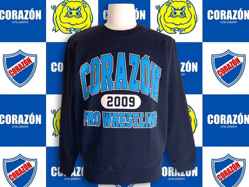 【#CORAZON】 Lサイズ完売、Мラスト1「CORAZON PRO WRESTLINGスウェット ネイビー」コラソンプロレスリングのカレッジ風スウェット。裏パイルで老若男女問わず着ていただけるデザイン。これからの時期おススメです。サイズはS~XXLまで。6,600円(税込)#デポルテス#プロレス#PROWRESTLING