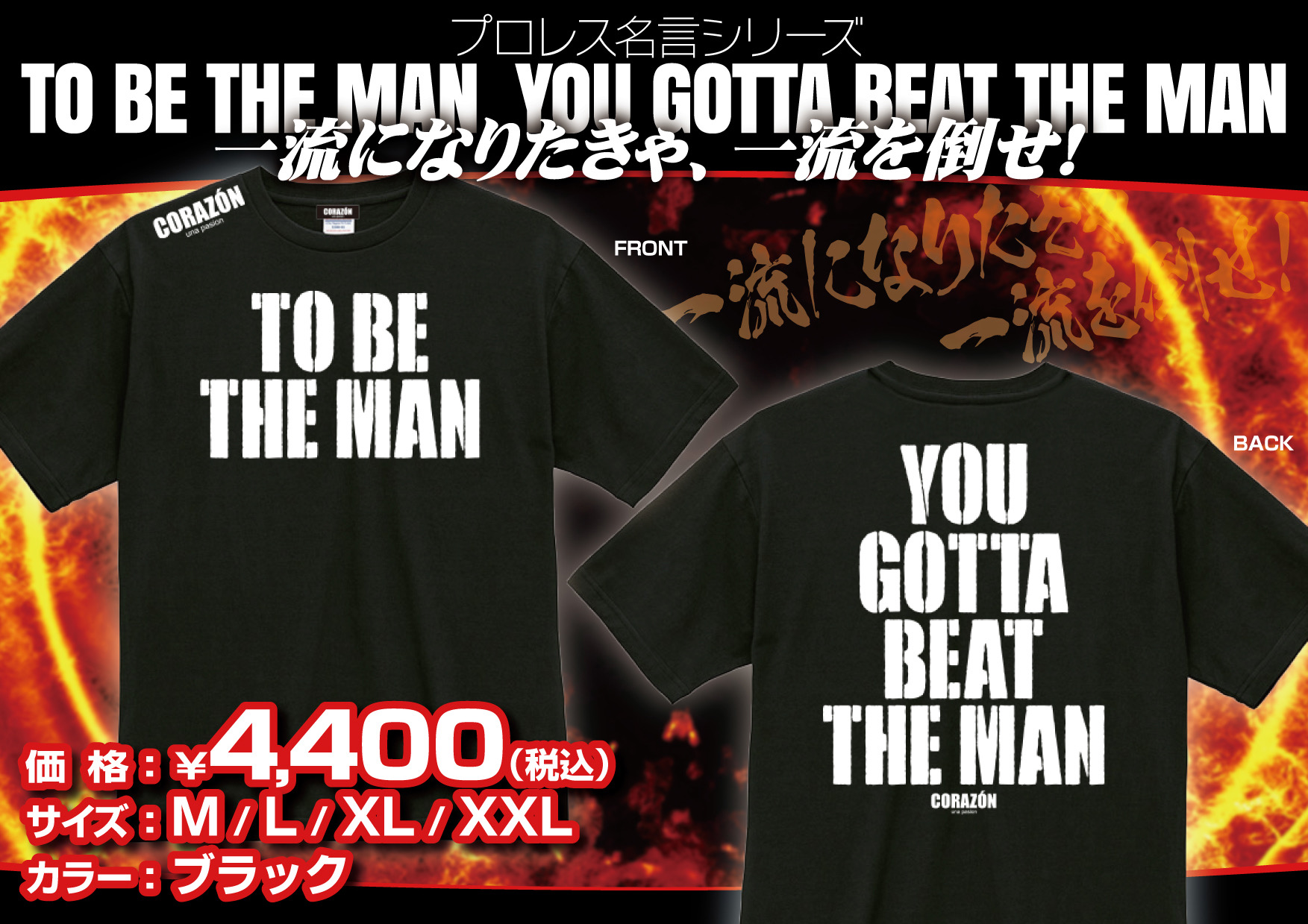 【#CORAZON】プロレス名言シリーズTシャツ第2弾M完売、Lもラスト1です「プロレス名言シリーズ TO BE THE MAN YOU GOTTA BEAT THE MAN」リック・フレアーの「一流になりたきゃ一流を倒せ」をCoolでシンプルに落とし込みました M〜XXLまで 4,400円(税込) #デポルテス#プロレス