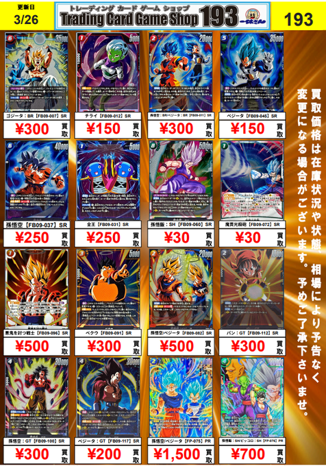 ドラゴンボールスーパーダイバーズ最新弾買取表🐉