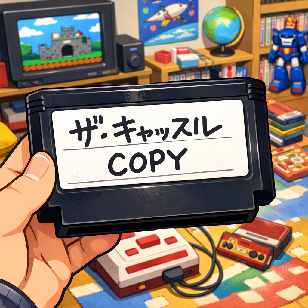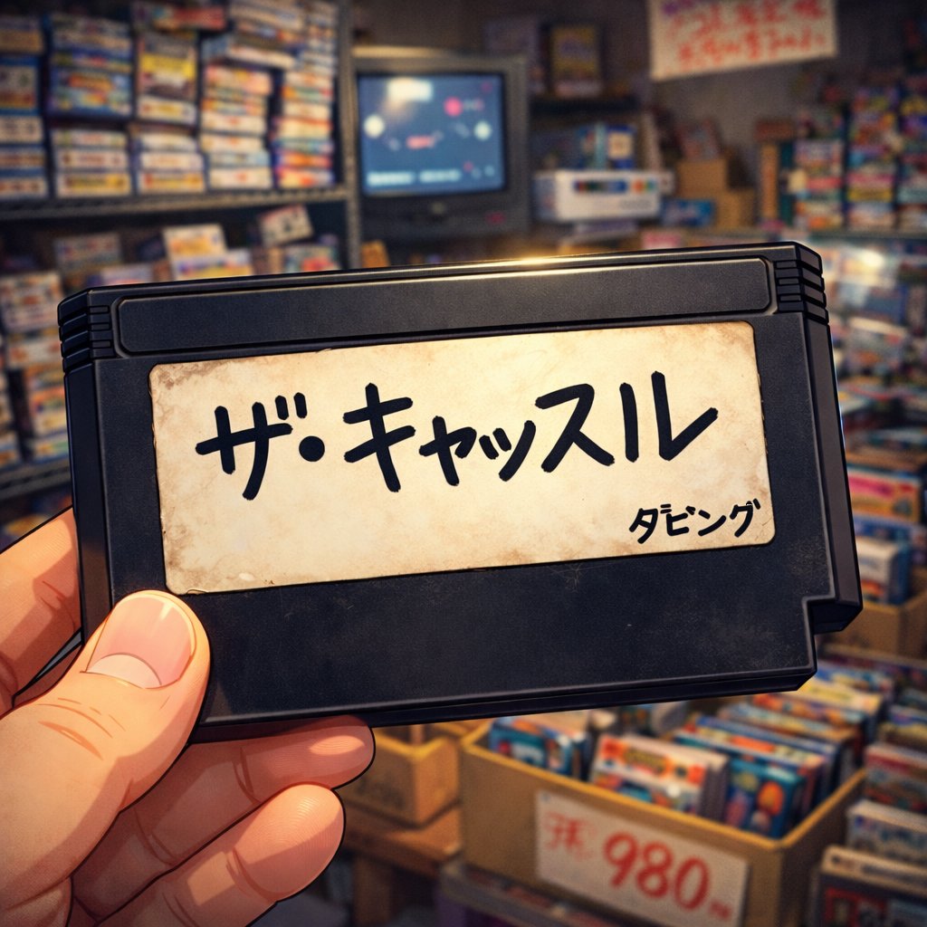シゴトBコース @maruhige_co · Feb 19 ゲーム好きな、いとこのお兄さん(大学生)に貸してもらったファミコンのゲーム 見たことのない黒いカセットだ という気持ちで遊んで下さい (画像は生成AIです) 当時は怪しげなお店もありましたね uu.getuploader.com/hackrom_ips/do… #キャッスルエクセレント #ファミコン #ハックロム #レトロフリーク 6 216