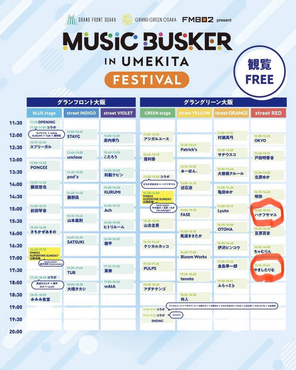 さちかぜあきの @sachikazeakino · 5h 13:35からGREEN stageで #ハナフサマユ さんとコラボだよい 楽しむよい わっしょいしょい #MUSICBUSKER_FES 7 59 521