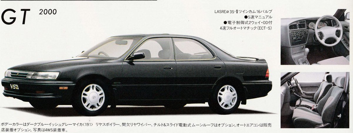 このビスタ2000GT、マイナーチェンジで廃止されたのは残念だけど、翌年に登場するウィンダムっぽいスタイリッシュなデザインでありながら3S-GEを搭載、そしてMTでも乗れるという、最高なグレードだったんだけど…