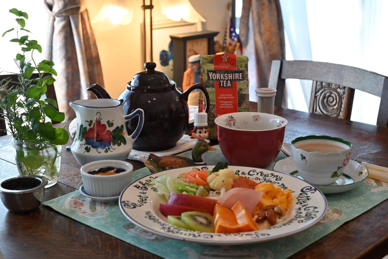 tom @kjtutom · Jan 7 今朝の紅茶 茶葉は #テイラーズオブハロゲイト #ヨークシャーティー 琥珀色のきれいな水色 ミルクinファースト 濃いめのミルクテー ごくごく ああ〜 美味しい😋 NIKKOR 55mm F1.2 NikonZ5 #SbernaDeruta #LauraAshiley #BrownBetty #茶香連 #おうちカフェ #木漏れ日のお茶会 #紅茶 #TEA #イギリスN 3 79 515