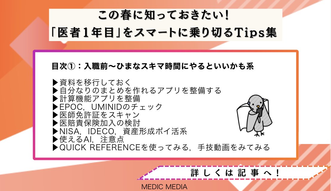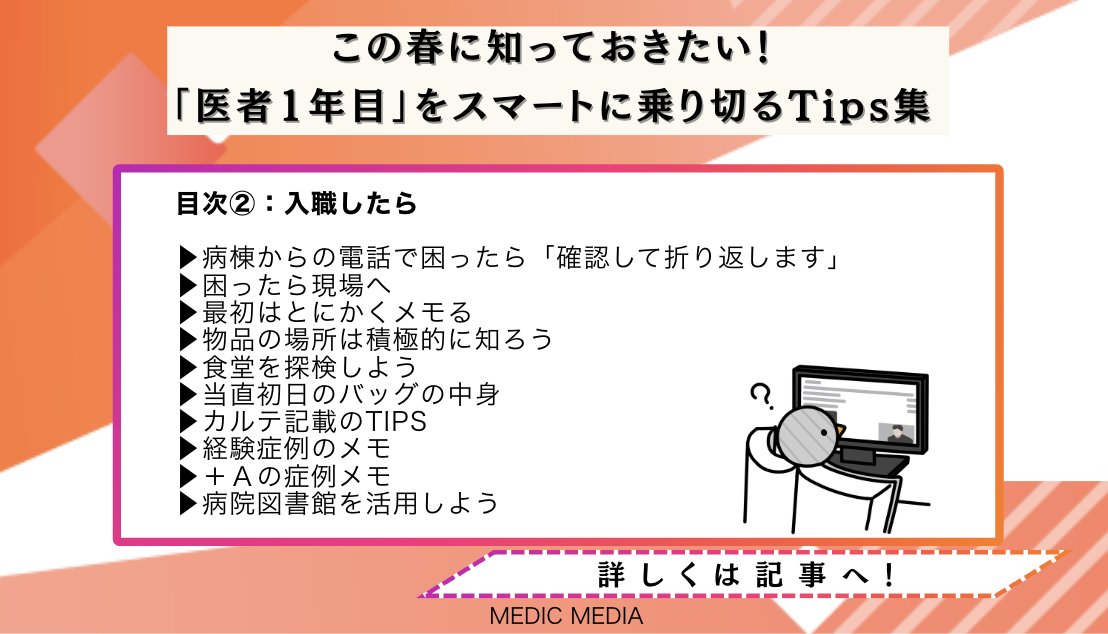研修Assist /Q-Assist内科専門医試験|mediLink動画 @medilink_KA · 5d ◥◣研修医必見◢◤ 卒4内科専攻医Y.Iによる, 「医者1年目」をスマートに乗り切るTips集👉️️ 詳しくは記事へGO!informa.medilink-study.com/web-informa/po…H #救急外来 #初期研修医K 9 77 6.6K