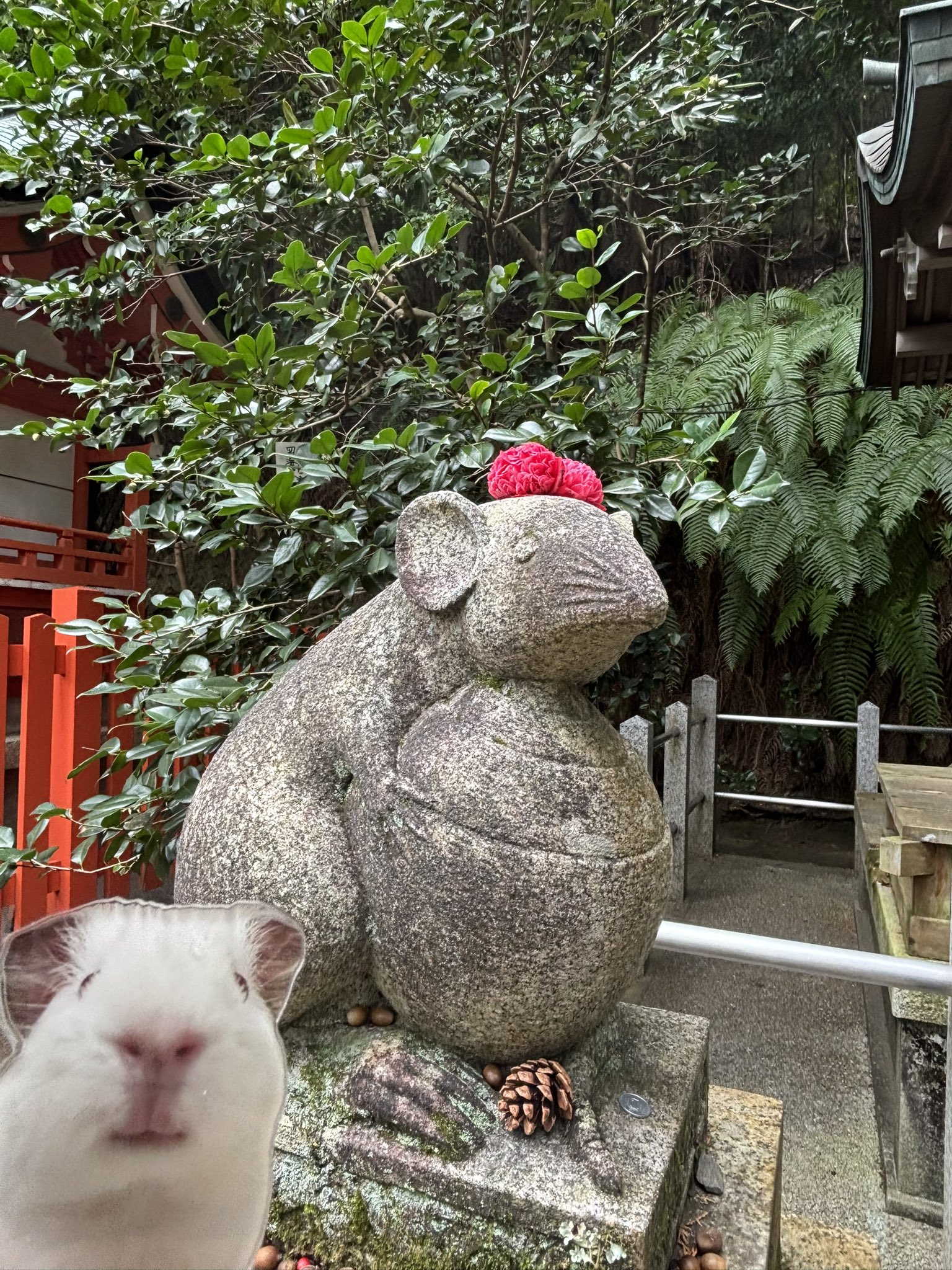ツバサ @RougeNoir_Ailes · 19h 京都市左京区にある「大豊神社」へ 行きました🪽 こちらの神社では、ちょっと珍しい 「狛鼠」が見られます。 椿の花でデコレーションされて より可愛らしくなっていました☺️ しだれ桜が美しい神社です🌸 ⬇続きます #大豊神2e 1 1 147