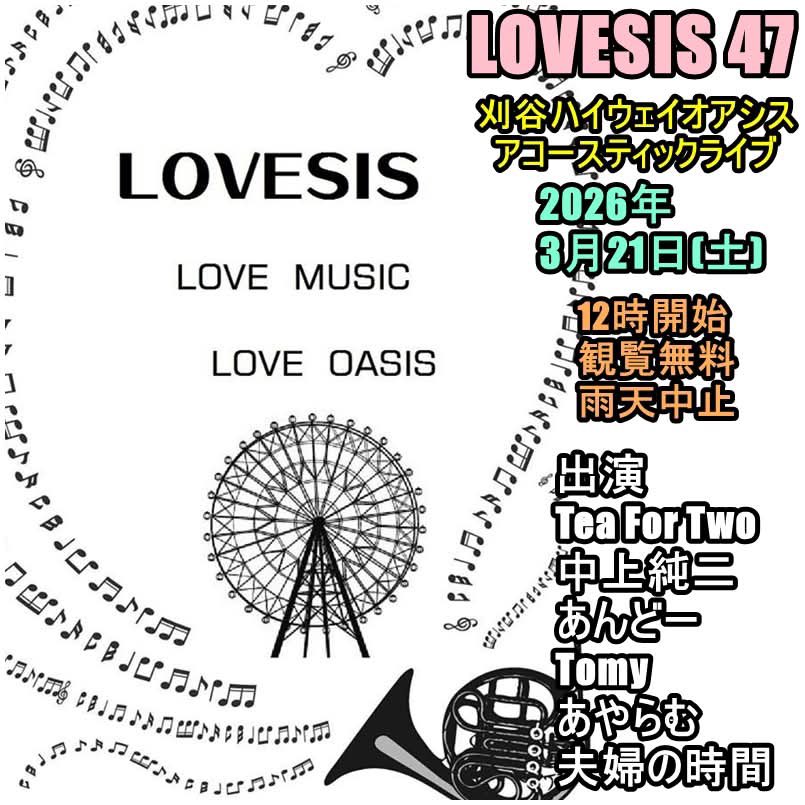 親方1966 @oyakata1966 · Mar 19 退職ゥ!退職ゥ!!と騒いでいたらあっという間に3/21(土)が来るよ!この日は刈谷ハイウェイオアシスアコースティックライブ「LOVESIS 47」開催!今回も素敵な出演者様ばかり! 12時開始観覧無料雨天中止! お時間のある方は是非! #夫婦の時間 #アコースティックライブ #刈谷ハイウェイオアシス 1 7 174
