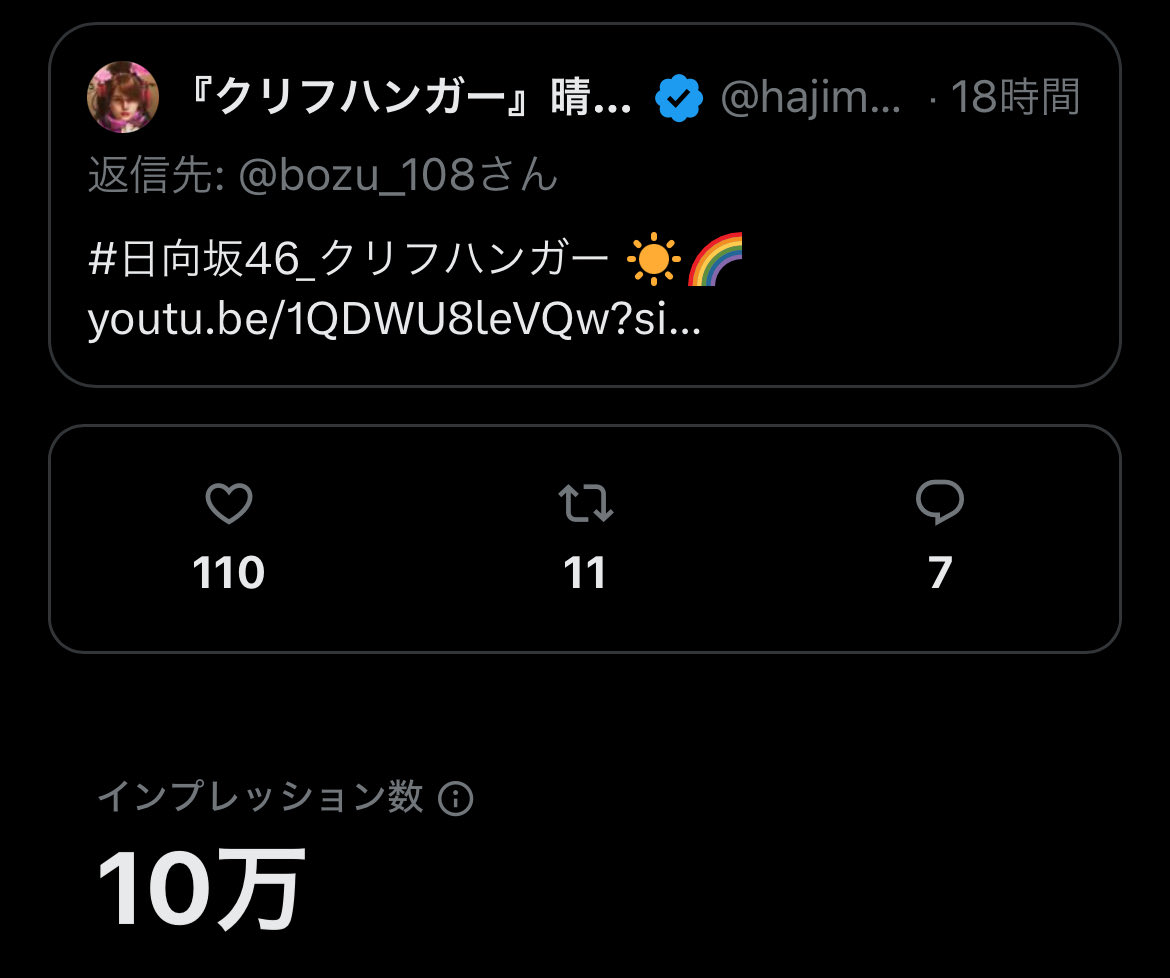 10万インプレッションを超えました❤️🔥🔥