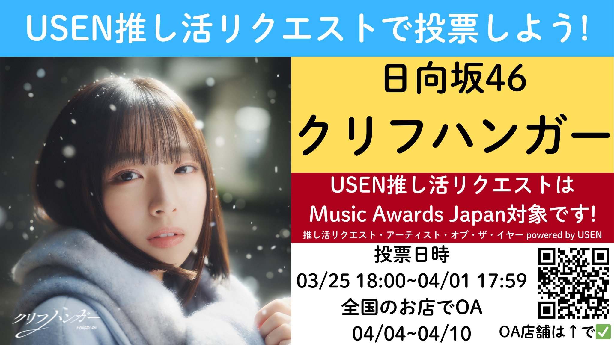 USEN 推し活リクエストで日向坂46の『クリフハンガー』をリクエストしよう! usen.oshireq.com/song/6828972 #USEN推し活リクエスト #推しリク #日向坂46_クリフハンガー #MAJ2026 #MAJ2026_推しリク #MUSICAWARDSJAPAN