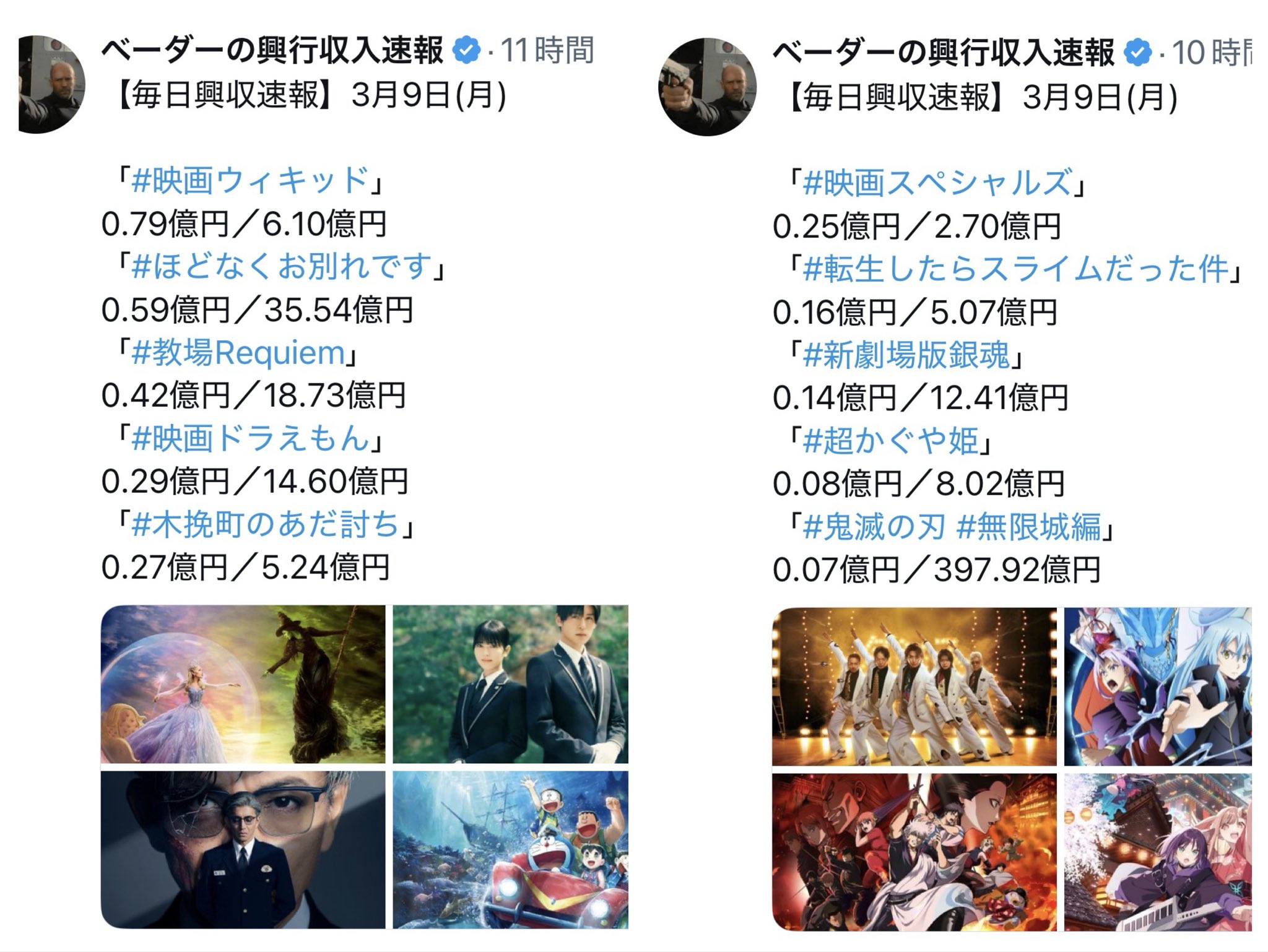 桜 @2Aqyg · Mar 16 スペシャルズ、やっと4億かー。なかなか厳しいな。あと6億。 厳しい🥲 皆頑張ろう。私も頑張る!今日も行く! #スペシャルズ #映画スペシャル #佐久間大介 #さっくん #SnowMan #映画館 #オドロウゼ ベーダーの興行収入速報 @mtt_75058 · Mar 16 【毎日興収速報】3月16日(月) 「#映画ドラえもん」 0.25億円/19.17億円 「#教場Requiem」 0.24億円/21.12億円 「#木挽町のあだ討ち」 0.16億円/6.84億円 「#映画スペシャルズ」 0.14億円/4.42億円 「#パリに咲くエトワール」 0.10億円/0.65億円 1 401