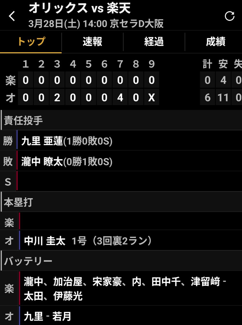 軽貨物の英ちゃん配送 @eisatou19891207 · 1h 昨日とは真逆の展開🧐 なんだかんだ野球はピッチャー🧐 #プロ野球 #楽天イーグルス #オリックスバファローズ #九里亜蓮 #完g5 パ・リーグ.com / パーソル パ・リーグTV【公式】 @PacificleagueTV · 1h 鉄腕亜蓮がさすがの投球!🙌 圧巻の奪三振SHOW👏 オリックス 九里亜蓮 投手が9回132球4安打12奪三振のピッチングで完封勝利!⚾ 👇開幕3連戦 無料ライブpacificleague.com/setup/plan?utm…NDh0 3 24 1.9K