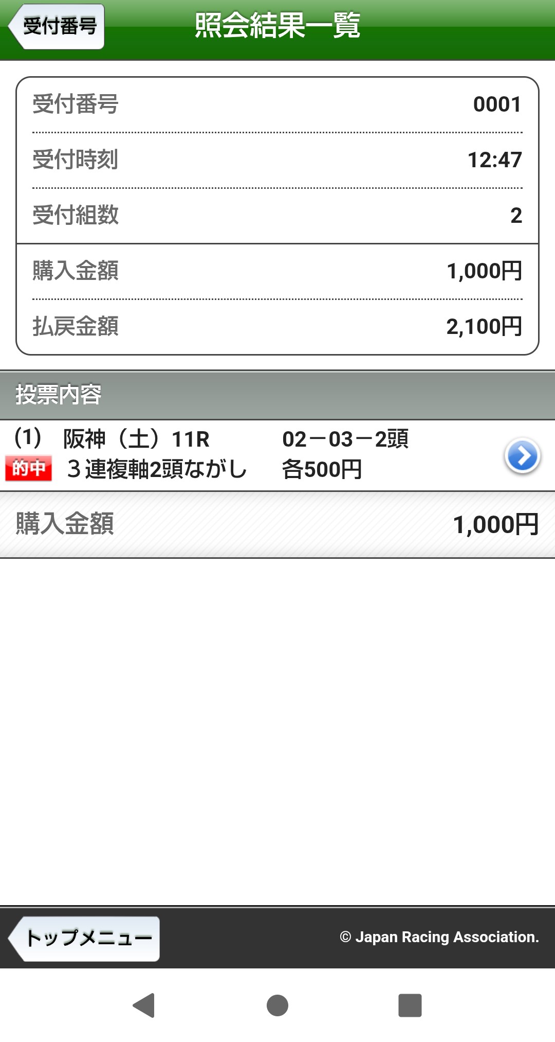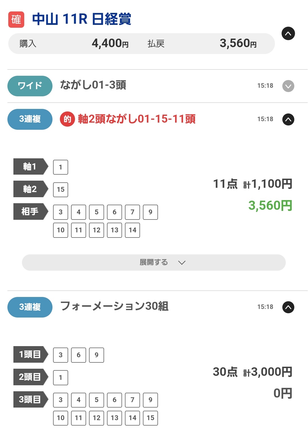 ワイド1点は的中です。