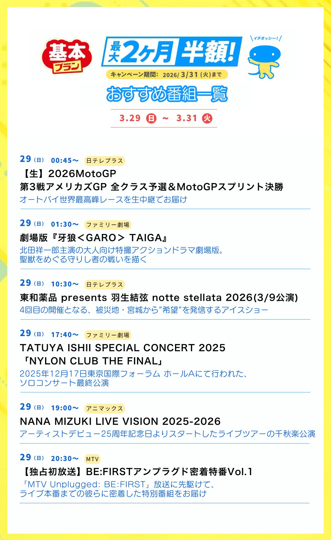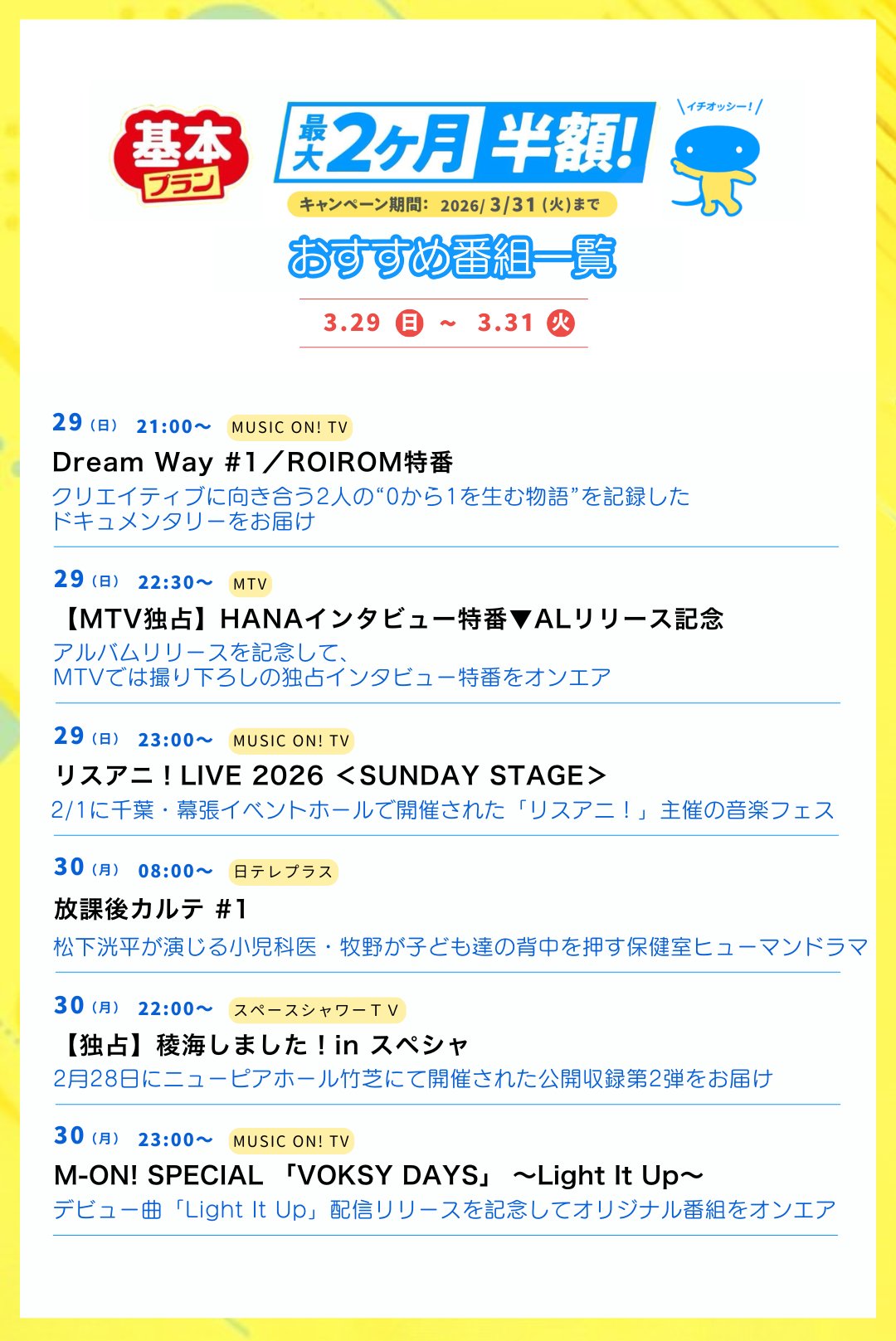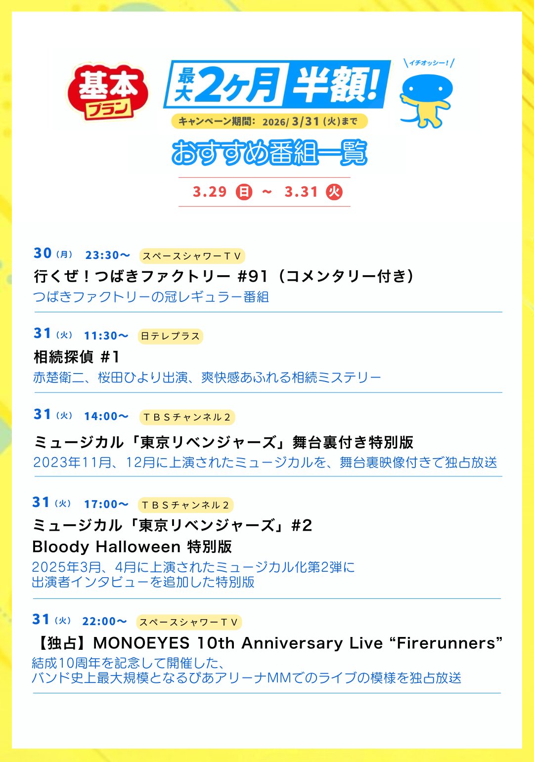 放送日:3/29(日)19:00〜