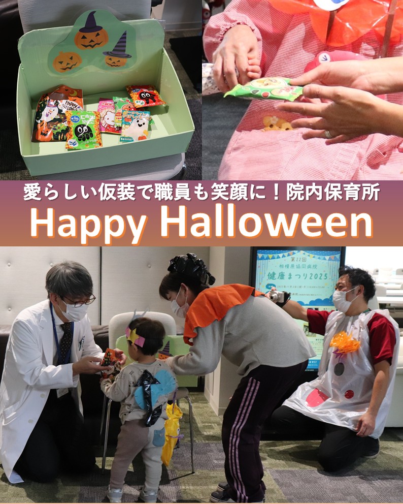 相模原協同病院 @Sagamiharahp · Nov 4, 2025 院内保育園のハロウィンイベントを開催しました!🎃 可愛らしい仮装をしたお友達が「トリック・オア・トリート!」と元気よく登場👻✨ 職員がお菓子を配ると、みんなニッコリ笑顔に😊 病院全体が、子どもたちの笑顔でいっぱいに溢れた一日でした🍬 #相模原協同病院 #ハロウィン #病院長 #荒CdYY 1 171