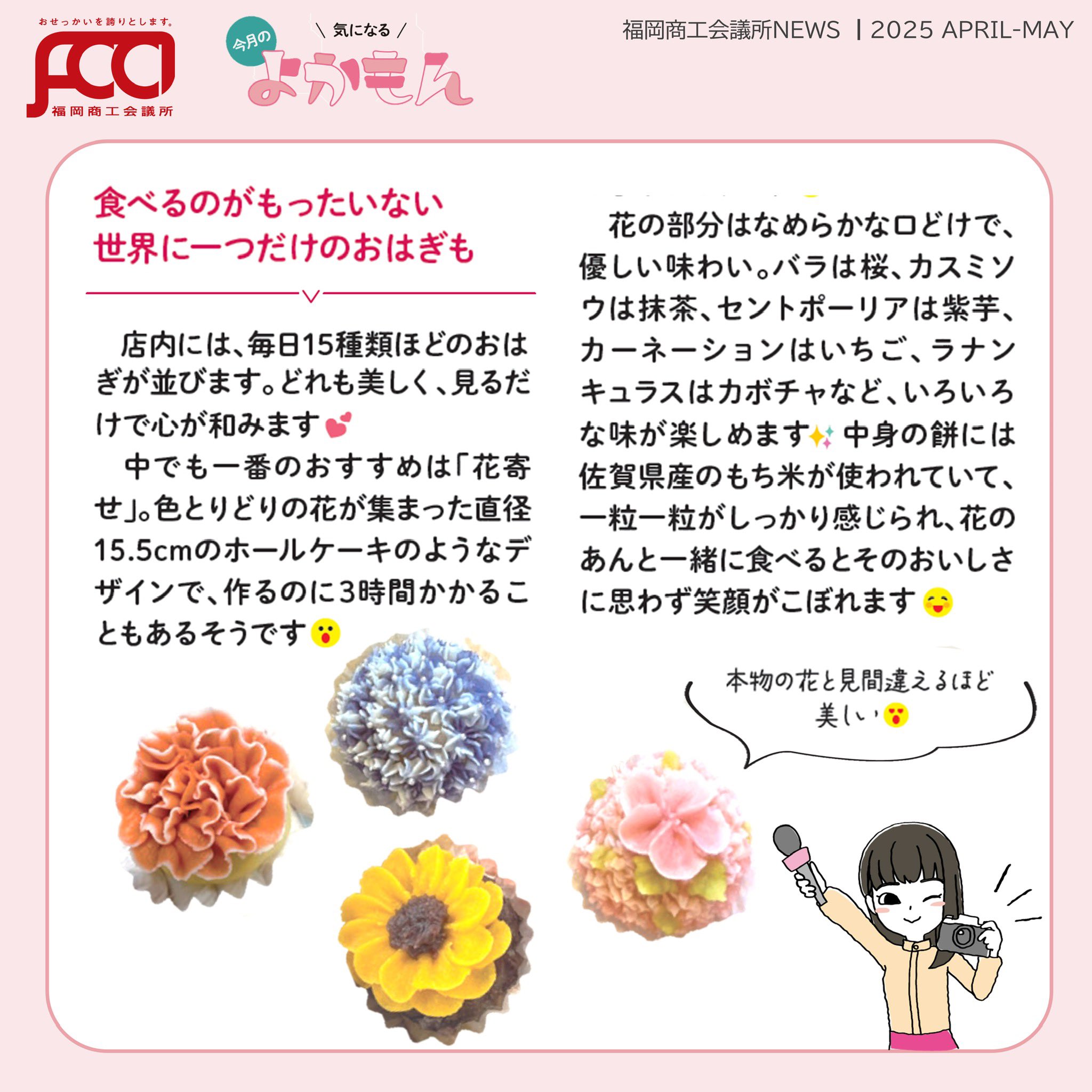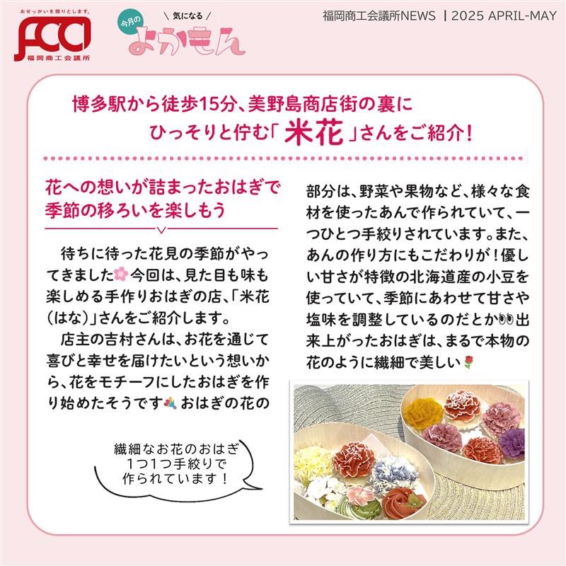 福岡商工会議所 @fukuoka_cci · Apr 24, 2025 #福岡商工会議所NEWS 編集部が街で見つけた気になる「#よかもん 」 🔍✨ 本物と見間違えそうな美しい #手作りおはぎ を提供する「#米花 (はな)」さんを取材しました📷 fukunet.or.jp/about/news/OyZ #福岡商工会議所 #商工会議所 #和スイx9t 158