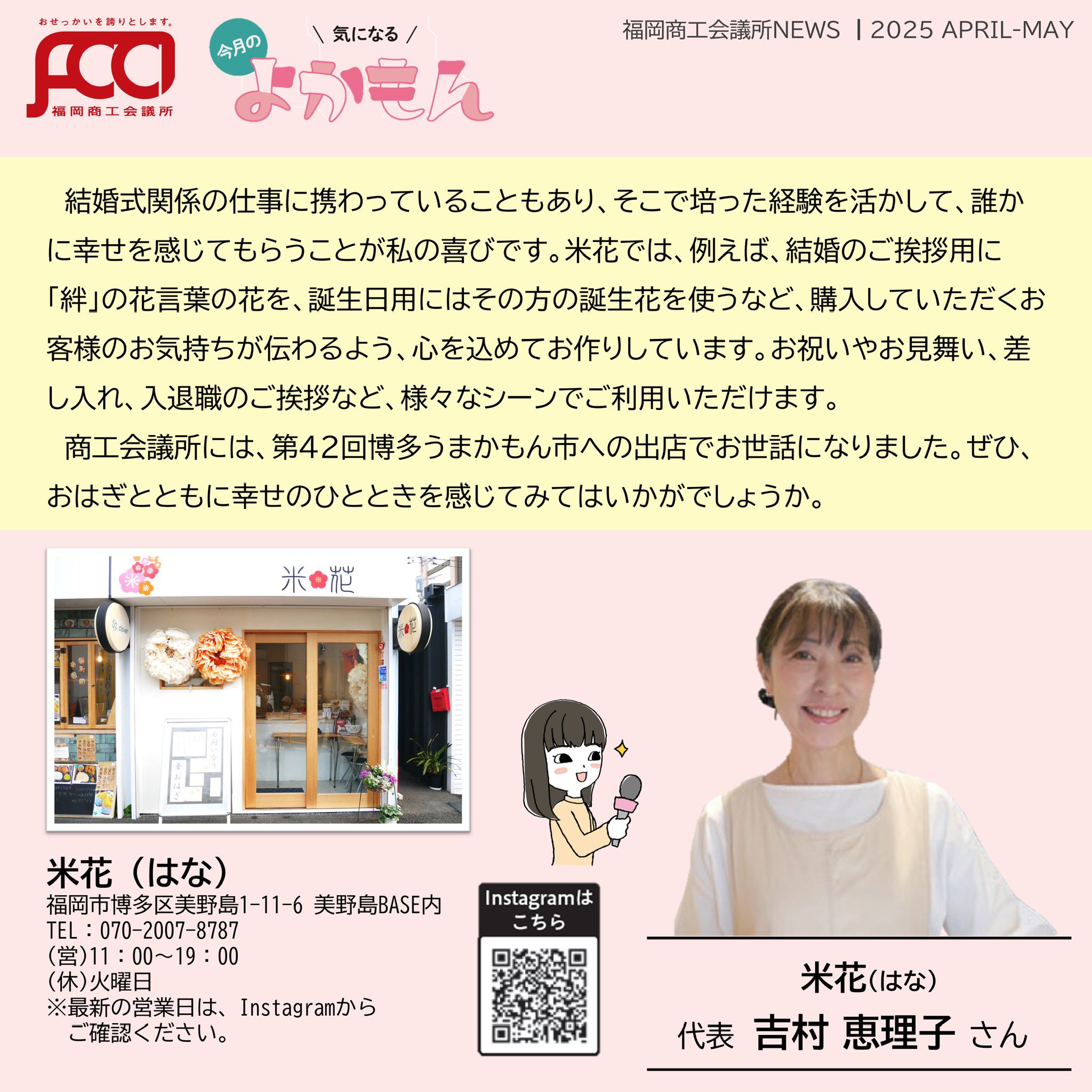 福岡商工会議所 @fukuoka_cci · Apr 16, 2025 #福岡商工会議所NEWS 4・5月号を発行🌸 <今月の主なコンテンツ> 🌸注目ピックアップ 第64回 #福岡市民の祭り #博多どんたく港まつり 🌸#カンパニーズチャレンジ ㈱新生堂薬局 🌸今月の #よかもん 米花(博多区美野島) fukunet.or.jp/about/news/jgOyZ #福岡商工会議所 #福商 #商JX1J3 1 7 475