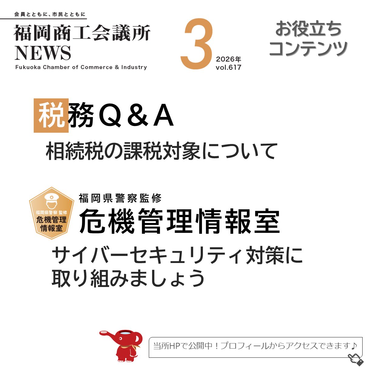 福岡商工会議所 @fukuoka_cci · 23h #福岡商工会議所NEWS 会報誌3月号🎎🌷 🔎#特集🔎 一生懸命取り組んでいる事業を届けるために〜共感を生む「広報・PR」への第一歩〜 詳細は、福岡商工会議所NEWS3月fukunet.or.jp/about/news/hmox #福岡商工gnjZ 1 2 114