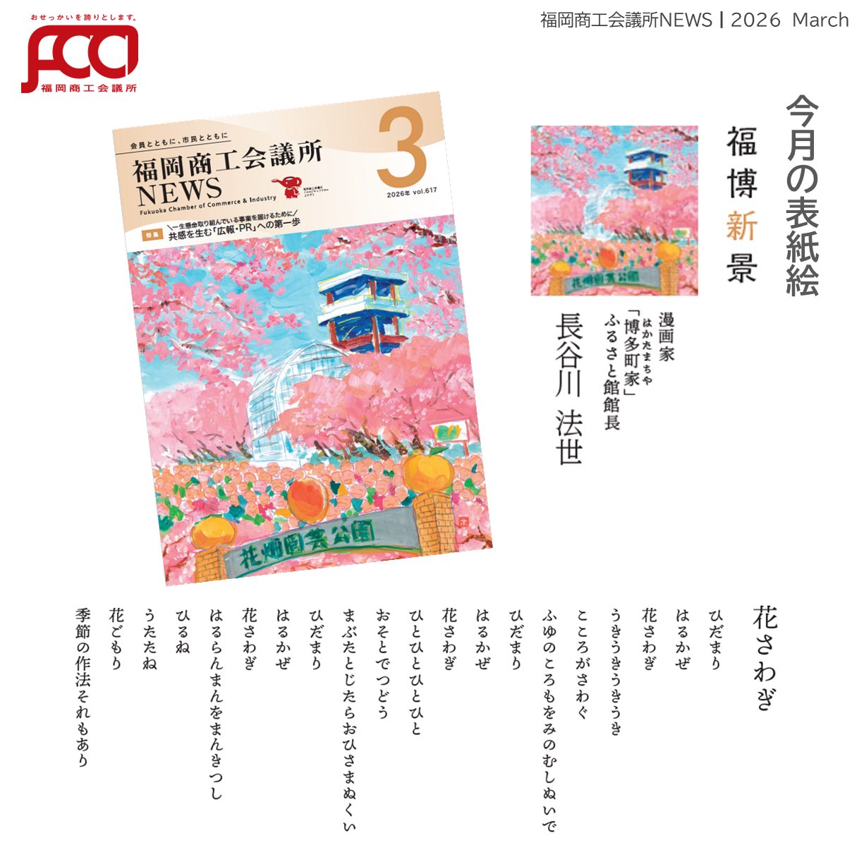 福岡商工会議所 @fukuoka_cci · Mar 10 経済トレンド丸わかり💡 #福岡商工会議所NEWS 会報誌3月号発行🎎🌷 🫧今月号のポイント🫧 注目ピックアップは、「Fukuoka Flower Show」についてご紹介!🌼 「Fukuoka Flower Show」の楽しみ方・注目ポイントが盛りだくさん!ぜひご覧くださいfukunet.or.jp/about/news/hXjhmox #福kOJi28L 2 4 231