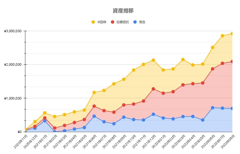 KENZO/けんぞー @kenkenzo39 · Aug 31, 2022 【資産公開】※2022/8/31時点 資産:2,920,006円 2022年目標:3,000,000円 年収400万未満1年9ヶ月、もうすぐで金融資産300万円というとこまで来た!!! #資産公 #投資家 #投資家さんと繋がりたい #投資初心者と繋がりたい 6