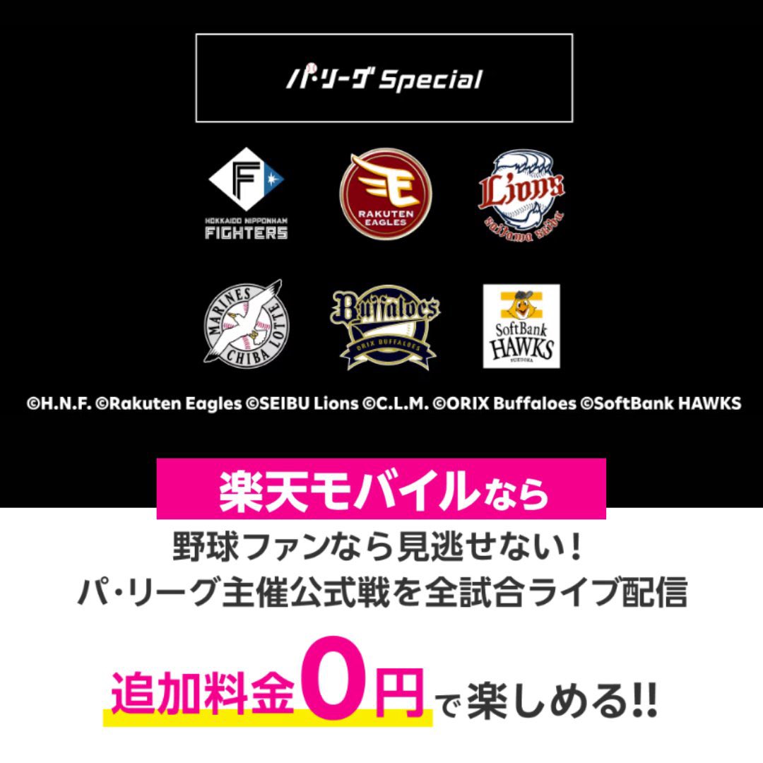 楽天モバイルならパ・リーグ主催試合が追加料金0円で観放題です📱