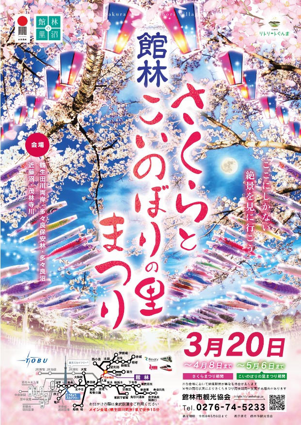 東武鉄道沿線情報 -北関東エリア- 【公式】 @Tobu_Kitakanto · 1d 🌸館林・鶴生田川の桜が開花中🌸 こいのぼりと桜の共演が楽しめる絶景スポットです🎏✨ 春の散策にぜひお越しください😊 #館林 #桜 #鶴生田川 #こいのぼり #春のおでかけ #東YaTo 17 78 4.4K