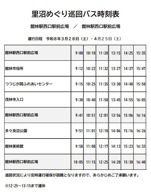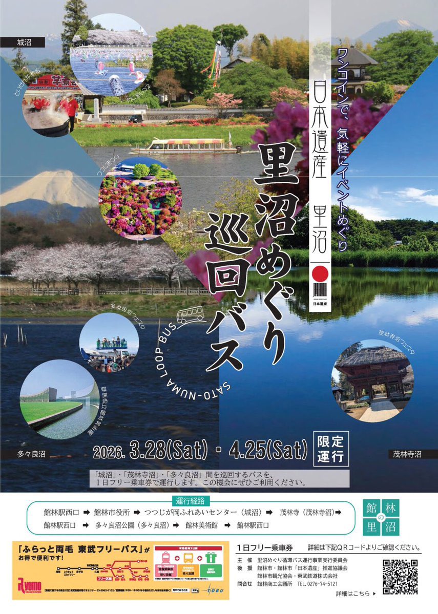 日本遺産!館林市「里沼」公式 @ta_satonuma2019 · 9h 【バス運行中です🚌】 予定通り館林の「里沼」を巡る『里沼巡り巡回バス』の運行を開始しました😆 市内各種のイベント巡りに是非ご活用ください! ▪︎HPsato-numa.jp/news/?p=3950Fc #日本遺産 #里沼 #館林 #イベント #バFM 4 6 234