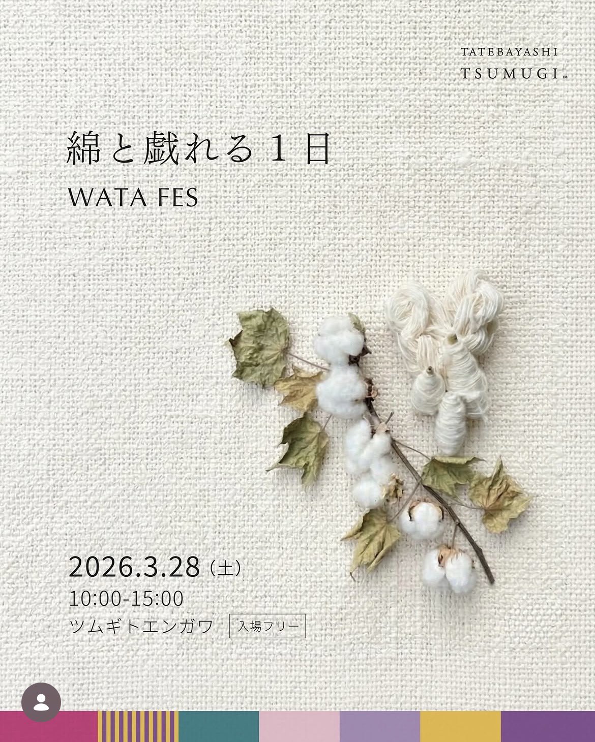 日本遺産!館林市「里沼」公式 @ta_satonuma2019 · 6h 【綿と戯れる1日 WATA FES】 ツムギトエンガワにて開催中です🧵🪡「糸つむぎ」や「わたつめ」、「わたあめ作り」などのワークショップ、館林紬製品の購入も😄新発売のネックストラップ👍 ▪︎合同会社 紬・組Instagrinstagram.com/tatebayashi_tsP78c… #日本遺産 #館林 #里沼 #館林紬 #ツムギトエxBiD 1 2 171